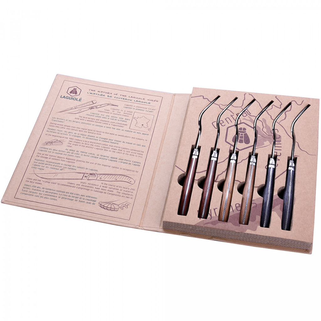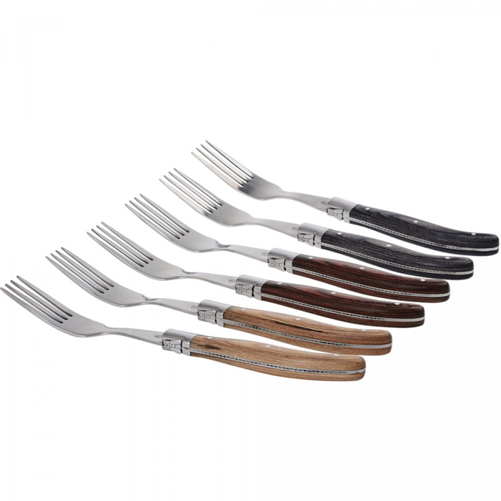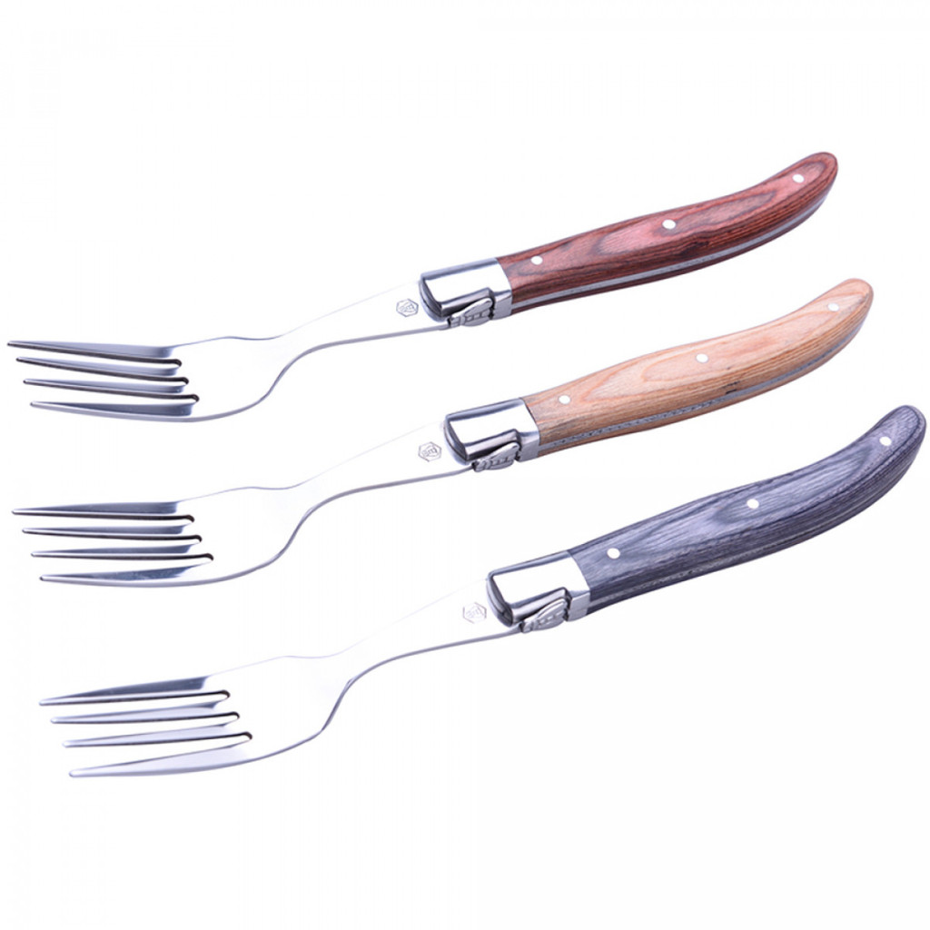 6 villa készlet, fa fogantyúval 3 válogatott szín, guilloché freskó, szatén króm tartók